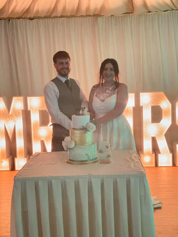 couple cutting their wedding cake